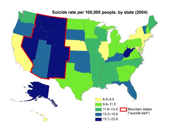 - (download) Suicide rate 2004 USA 50dpi.jpg . . 550 × 425 . . 27 KB . . GregSmith . . 17:55, 30 August 2007